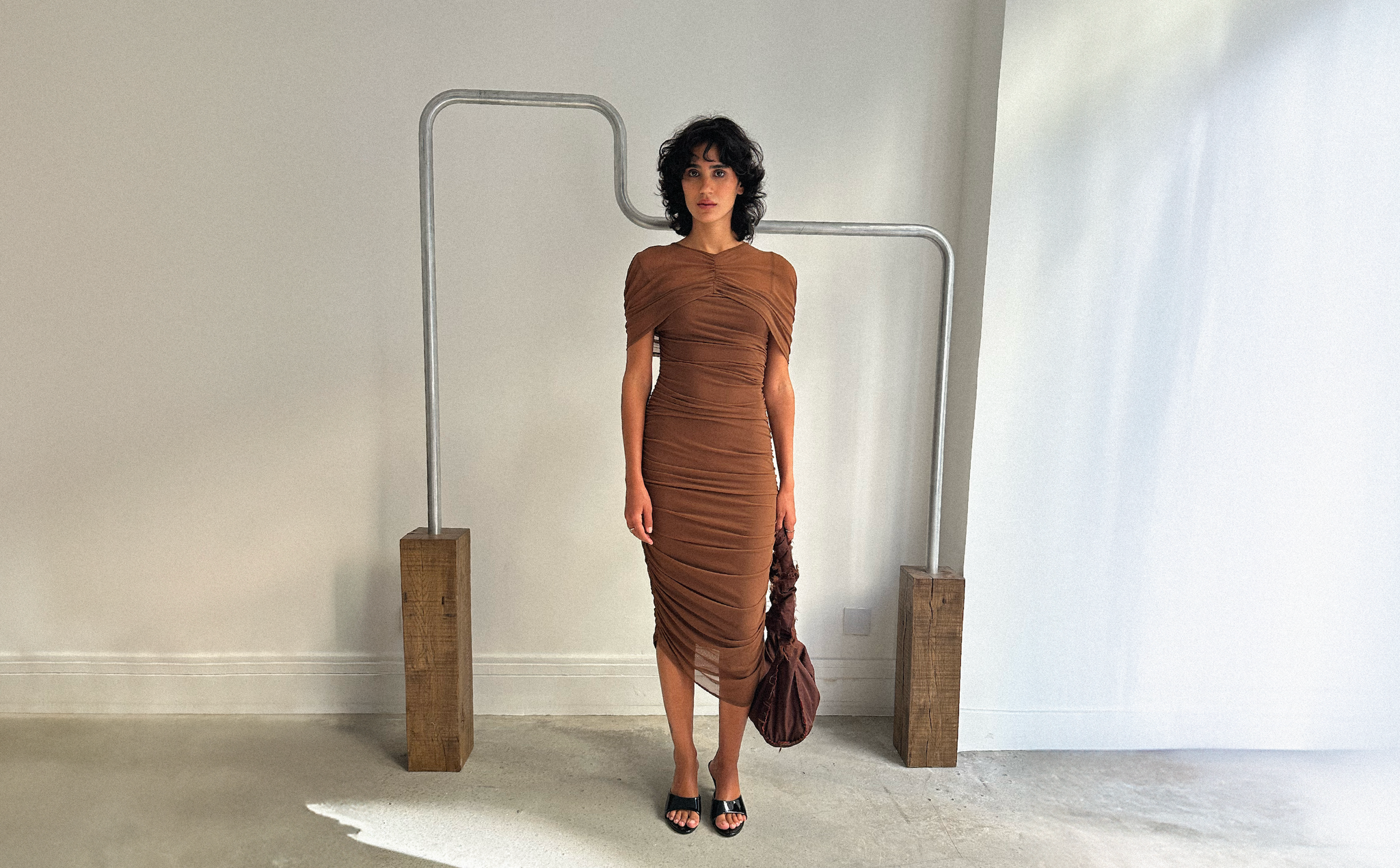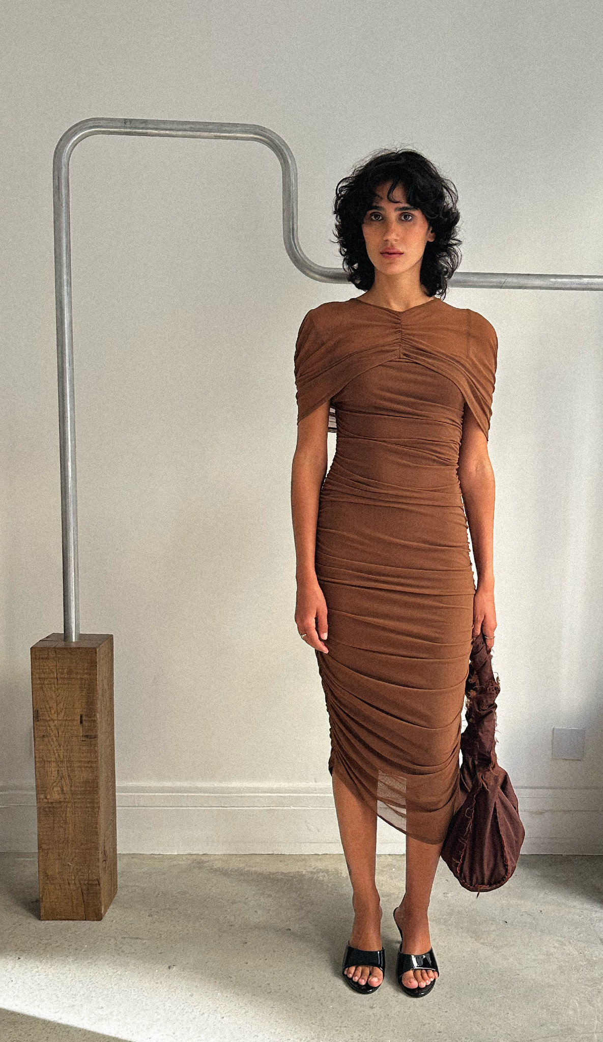 - Bordeaux mesh with draping$165.00